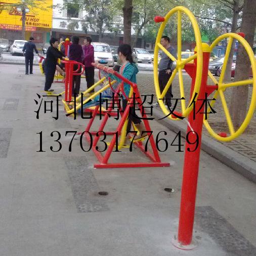 产品名称:双人大转轮 产品型号:QX-089H 产品规格:73*92*188 cm 主要功能:肩关节锻炼 生产流程: 原材料按尺寸专业裁料机切割,焊接成型;成型后经专业技术人员进行抛砂处理,表面再喷涂户外环保聚酯珠光粉末,高温固化,表面光滑,抗紫外光能力强,色彩鲜艳,不易脱落,耐腐蚀;喷涂设备采用计算机控制的韩国进口静电粉末喷涂装置,粉末回收采用小旋风和进口滤心,高效率,无污染。 健身路径的功能很多,健身路径主要分为以下几大类别: 1、力量型器械一些锻炼力量的器械可以与健身房里的器械相媲美。另外,单杠的引体向上、双杠的两臂屈伸也是练习力量的很好方式。 2、弹跳型器械竖立的高度牌,水平的横梁都是有助于双腿弹跳的器械。在这些器械上采用助跑或者原地跳跃,有助于保持腿部的弹跳能力。 3、灵敏型器械脚踩梅花桩、双手转动转盘,可以练习手脚、头脑的反应能力以及四肢和大脑的协调能力。 4、柔韧型器械站在一排排的栏杆(或者叫肋木)上牵拉韧带或者悬垂举腿,可以提高关节的柔韧性。 5、耐力型器械类似于跑步机,可以在上面跑一跑,形同跑步。当然,健身路径上的器械有很多用途,以上分类也不是的。根据自己的身体状况,组合运用是比较合适的 。 ’